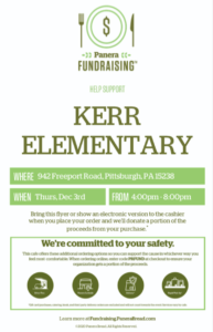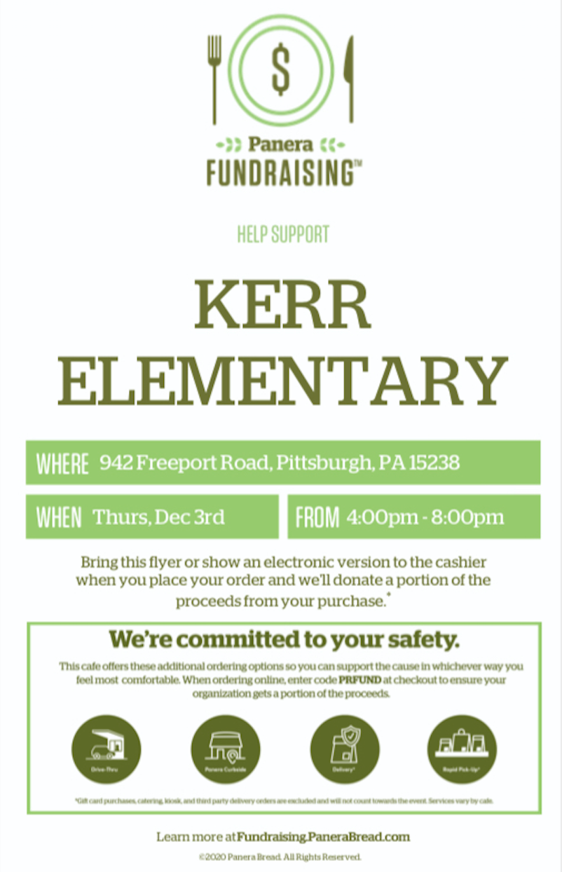 Make dinner easy tonight and support the Kerr PTO! Show the flyer in the restaurant or use the promo code from the flyer for online orders.