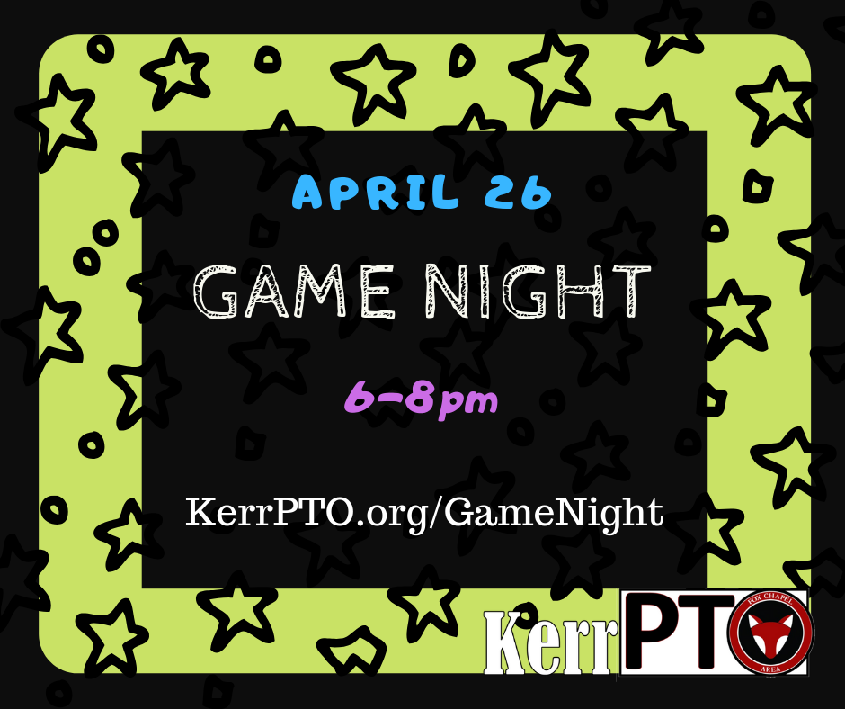 Kerr--MultiPurpose Room (MPR)FREE EVENT TO ATTEND. Find all of the info at KerrPTO.org/GameNight Gamewright is providing the games for us to play. Snacks will be available for purchase at the event! Games can be purchased at the event and also available online to buy. Sign up to help here.