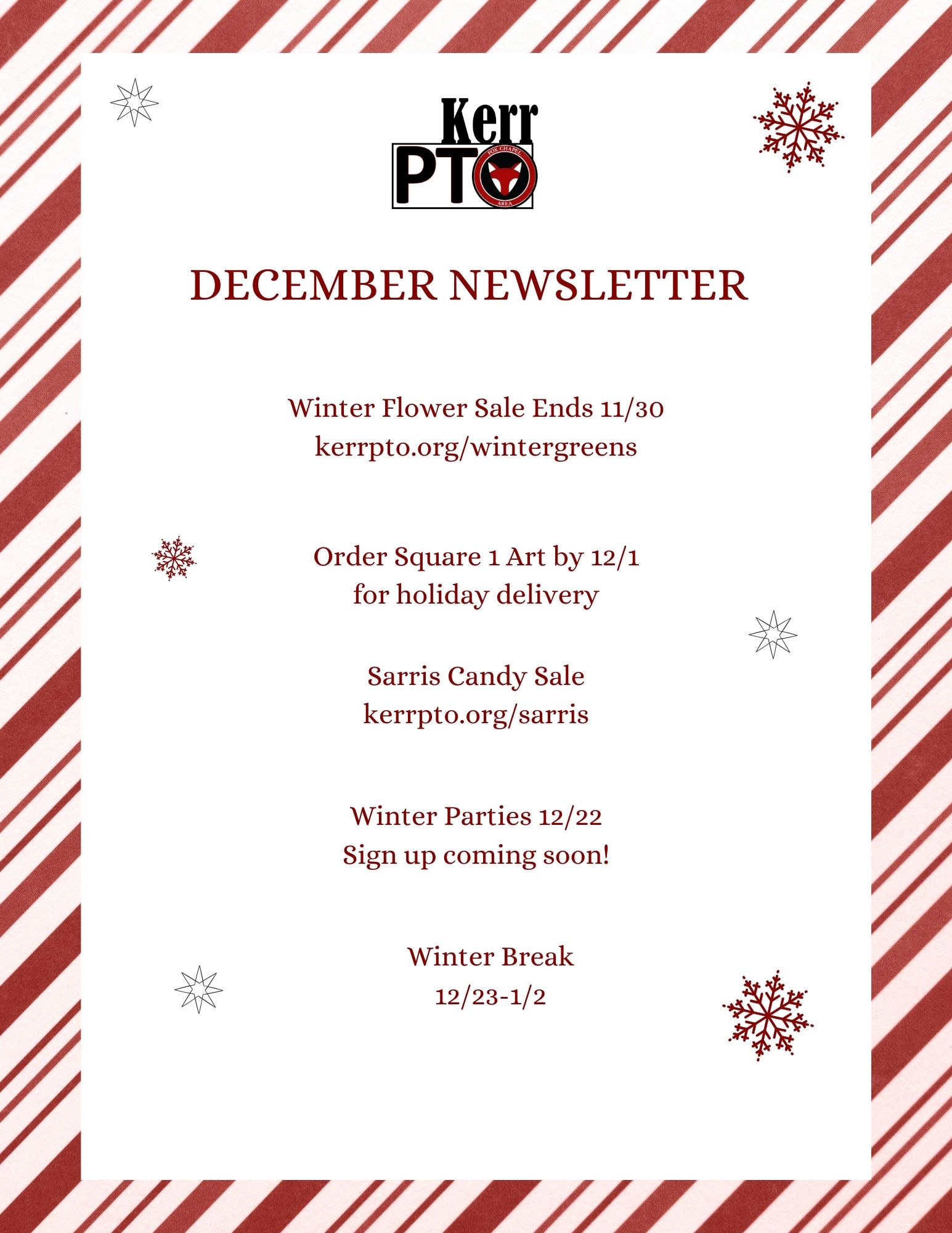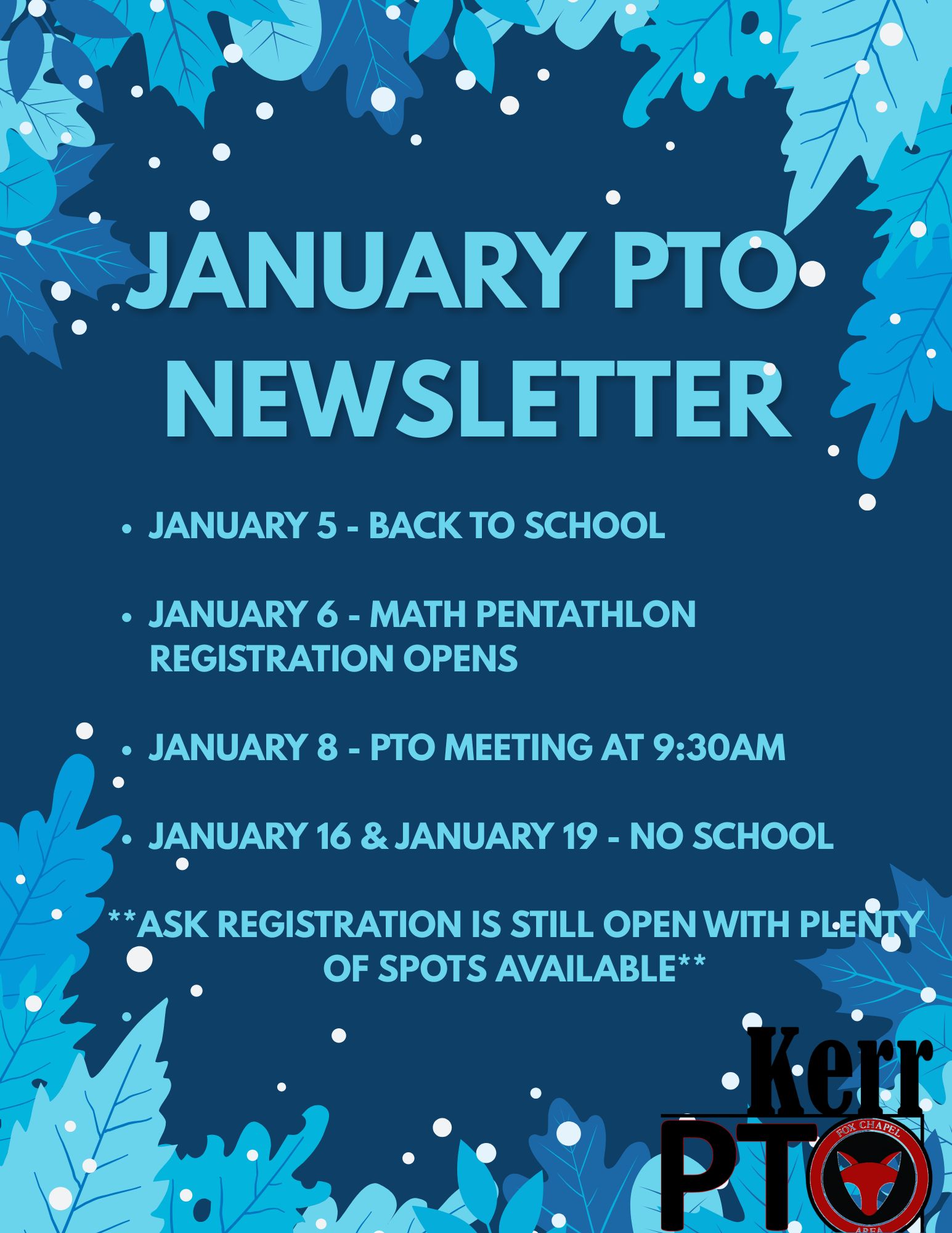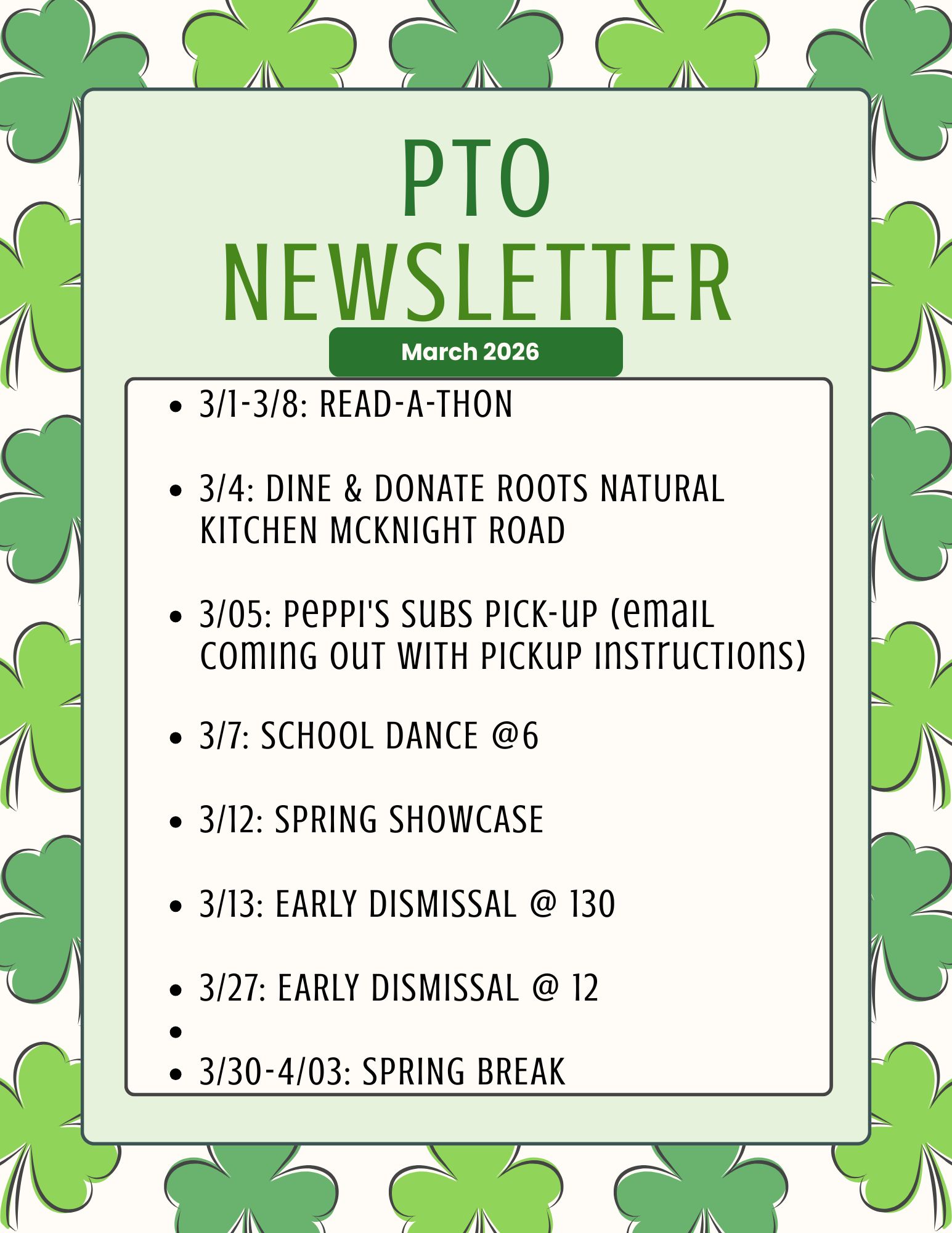 The PTO sends out email newsletters once a month.